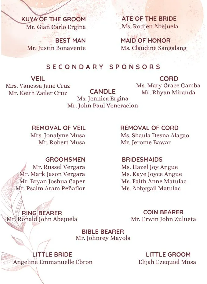Be there 1 hour before (3PM) the ceremony starts — para may time pa mag-selfie-selfie at makagawa ng reels-worthy entrance!